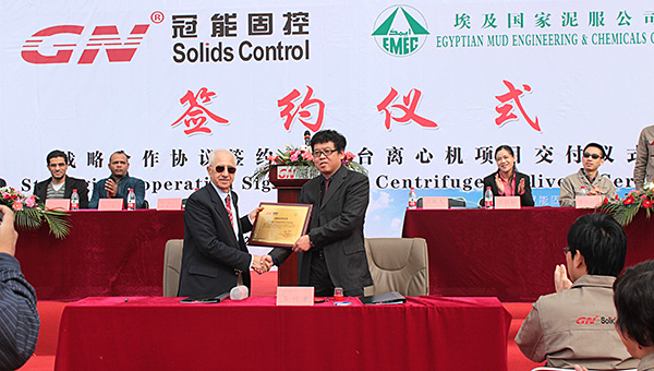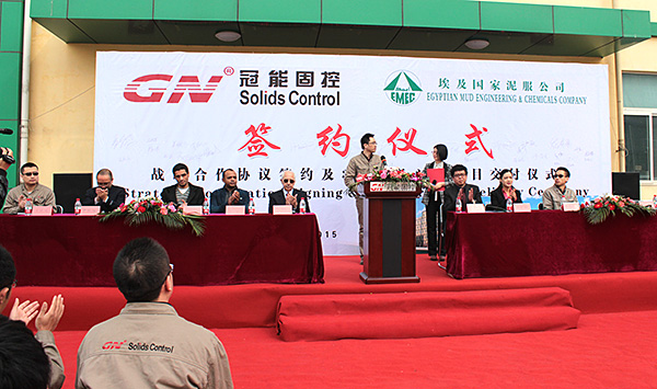 2015年3月12日,冠能固控埃及国家泥服公司在中国北京冠能公司总部签署战略合作协议,为此冠能固控举办了盛大了签约仪式,仪式也包括了一大批离心机的成功交付。