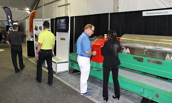 展会上很多客户对我们的22英寸的离心机表示出了强烈的兴趣。我们离心机的转鼓主要部件由2205双相不锈钢离心浇铸而成,其他部件由316L不锈钢制作而成。转鼓里的螺旋推进器镶嵌了超过4mm的耐磨合金片,能够有效提高使用寿命。为了满足加拿大市场所要求的CSA标准,我们展会离心机配备了符合CSA防爆标准的电机(125HP和50HP)以及变频控制柜。从技术规格上来说,冠能的GNLW553-VFD离心机与市场上使用广的Alfa Laval Lynx 40相当,并且已经在石油天然气钻井固控系统、钻井废弃物处理以及隧道盾构和淤泥处理等行业得到了广泛的应用。