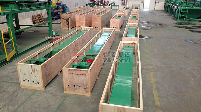 2、配备12台螺旋输送器,用于振动筛,泥浆清洁器、离心机等固控设备处理后排出的钻屑,并提供给钻屑甩干机。冠能公司生产的螺旋推料器U型槽增加了框架支撑,电机和齿轮箱也有钢框架的保护。螺旋材料采用16Mn,具有更好的耐磨性,螺旋设计12英尺为一节,方便现场安装及运输。
