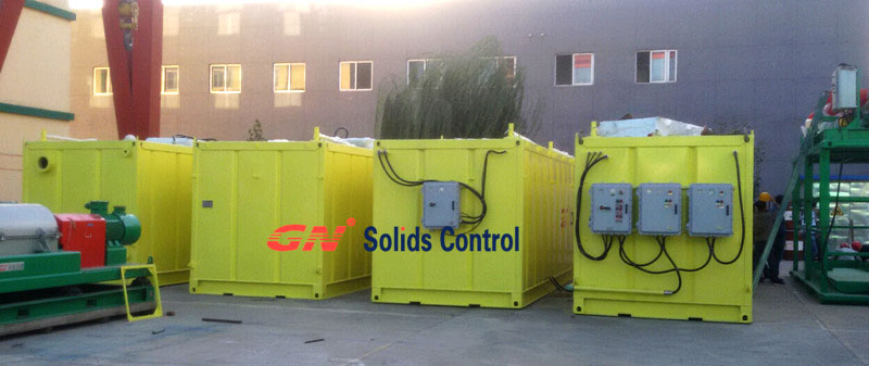 1、三套泥浆罐采用了相同的40英尺集装箱的标准尺寸,其中一具泥浆罐配有2套75HP的剪切泵用来切割添加化学品的聚合物,以重新配置钻井泥浆。