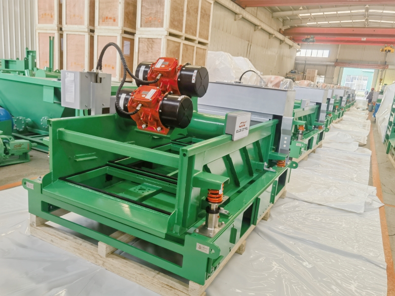 1、钻井液振动筛冠能钻井液振动筛选用的是意大利OLI或者美国马丁电机,电器元件选用的是西门子施耐德品牌。重负载设计,筛箱整体热处理,振动强度可达8.0G,满足各工况的使用。主要用于一级筛分,分离100um以上的固体颗粒。本次供货振动筛型号为GNZS594J。