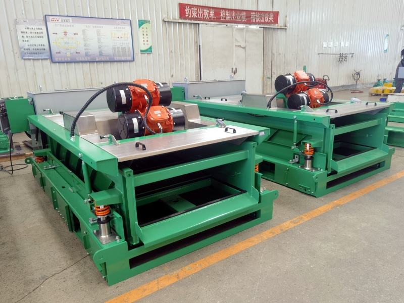 上周,冠能固控为某知名中国钻井公司供货了3台防飞溅钻井液振动筛和1台泥浆清洁器。满足钻探泥浆环保防飞溅处理。1、冠能钻井液振动筛 冠能振动筛选用的是意大利OLI或者美国马丁电机,电器元件选用的是西门子施耐德。重负载设计,筛箱整体热处理,振动强度可达8.0G,满足各工况的使用。振动筛主要用于一级筛分,分离100um以上的固体颗粒,同时还可以通过调节振动筛筛网的目数来调节筛分颗粒的大小,同时可以根据客户要求做成双联筛,通过泥浆分配器将泥浆分配给两台振动筛同时处理,提高处理量。此次供货的振动筛进行了防飞溅设计,有效防止物料飞溅,减少了泥浆浪费,同时保护现场作业环境,满足业主需求。