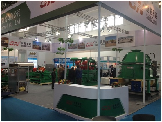 这是我公司第五次参加cippe石油展会,冠能固控每一届展会都有新的技术及产品展现给大家,在本次展会上,简洁大方、节能环保的布置风格彰显着冠能的企业文化,自主研发的钻屑干燥器、GNLW553VFD高速变频离心机、GNLW363VFD高速变频离心机、GNZS703型钻井液振动筛、GNZS594-2S12N型清洁器,精美的制作工艺、鲜艳的环保色系、在灯光的照射下,格外的吸引着大家的眼球。来自多个国家和地区的客户对我公司的产品显示出了浓厚的合作兴趣,并与我公司进行了深一步的洽谈。
